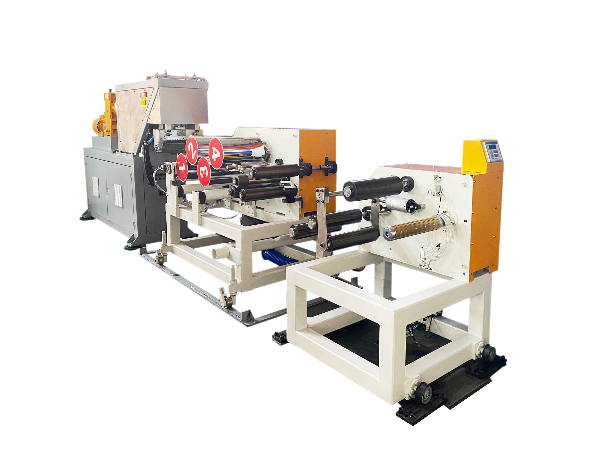 雙工位 中心收卷 適用物料:PLA,CPP,CPE,PLA,TPU,EVA,PVDF,PE透氣膜,石頭紙等